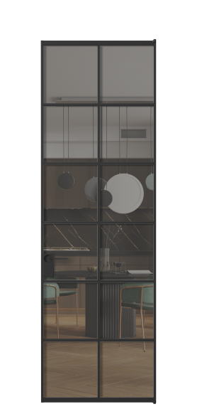 Минималистичный профиль повторяет форму профиля алюминиевых раздвижных перегородок Formato, что позволяет легко сочетать оба решения в одном пространстве.